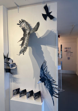 In her response to the movement, light, shape and pattern of these amazing birds, Philly has experimented with mark-making, photography and hand-printed collage papers. Combining these in both one-dimensional and three-dimensional pieces, she has developed her understanding of the power of multiples and scale. She has aimed for simplicity through a limited colour palette and through cleanness of shape and line. She has also enjoyed exploring shadow and kinetic movement as additional players in her work.